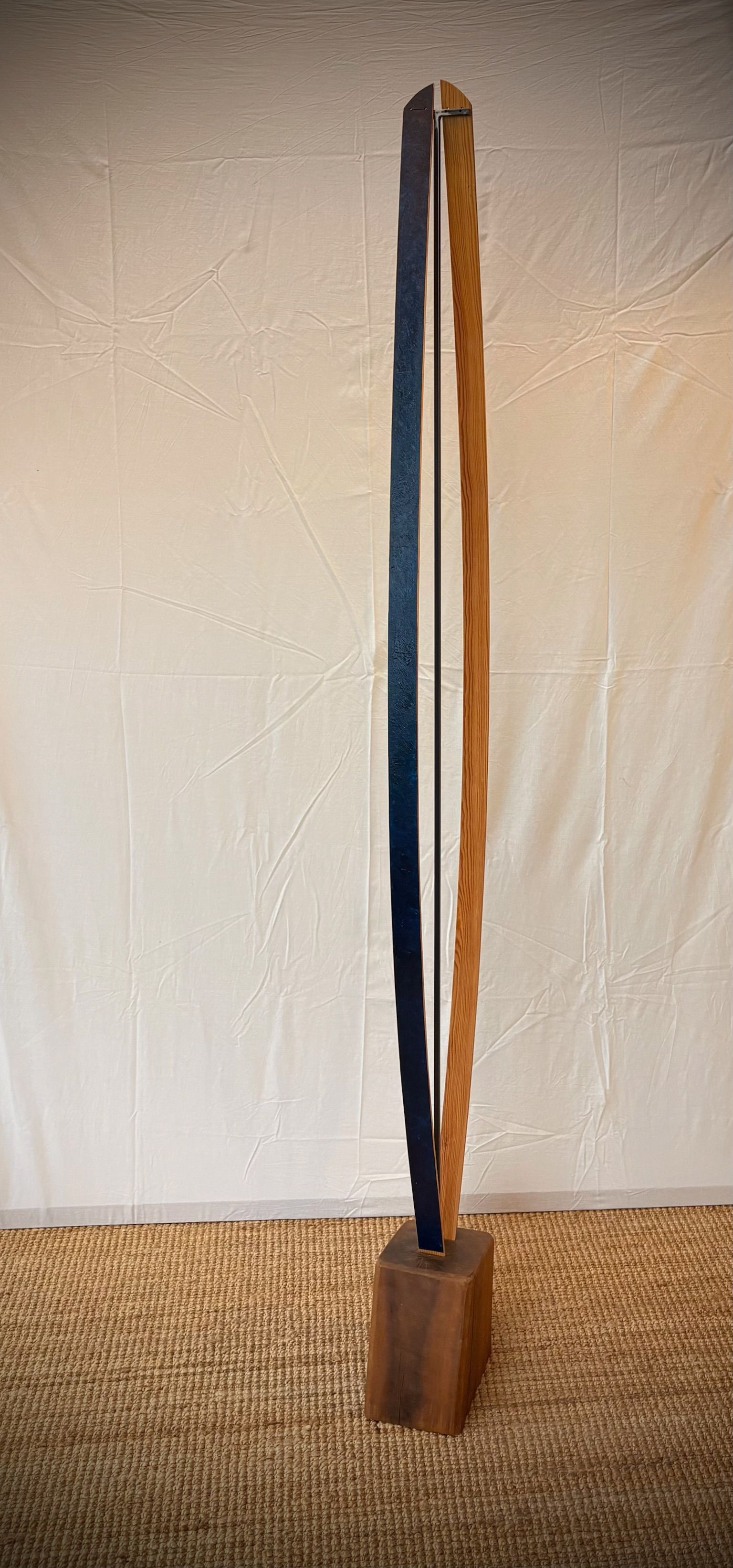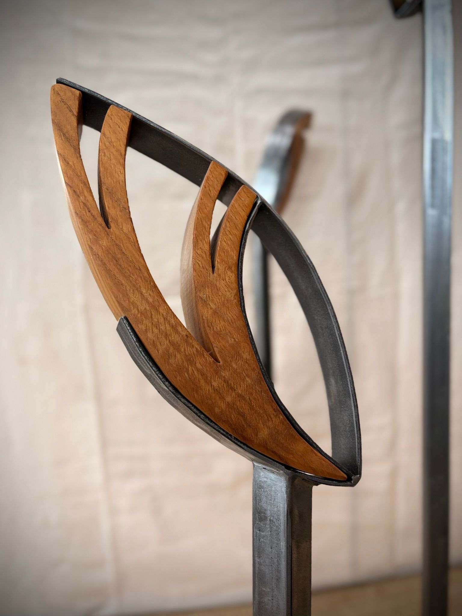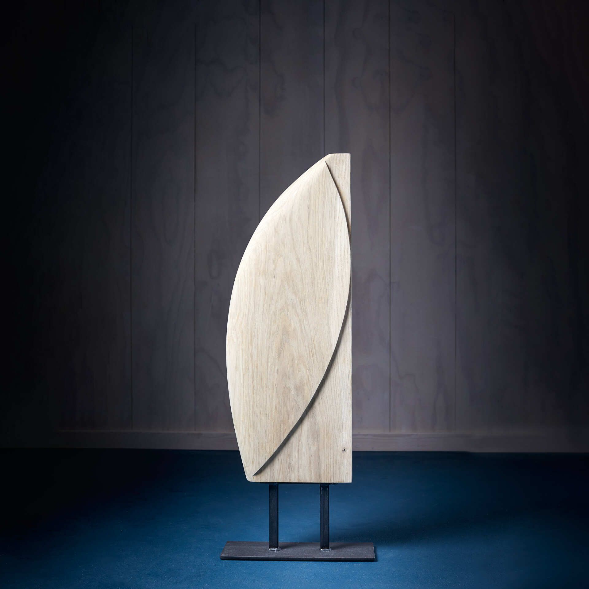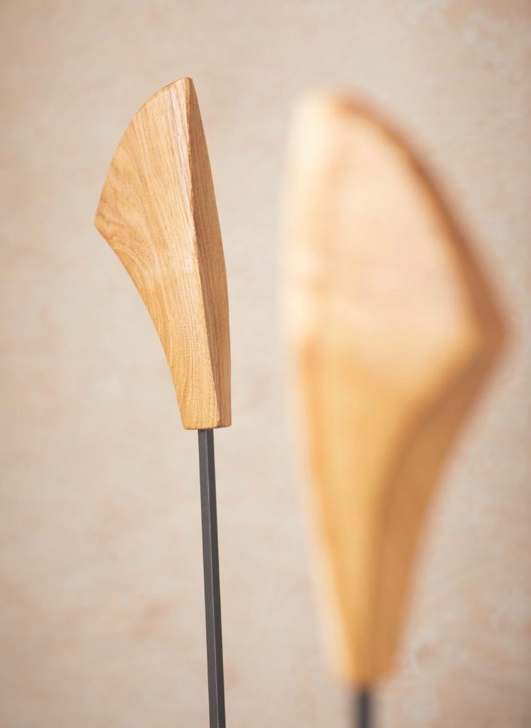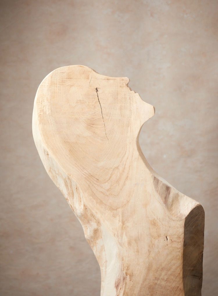 Het optische contrast tussen de harde rechte lijn en de afgeronde rug vertellen over recht en genade. Ze horen bij elkaar en strijden met elkaar. Dit beeld moet je met je handen bekijken.