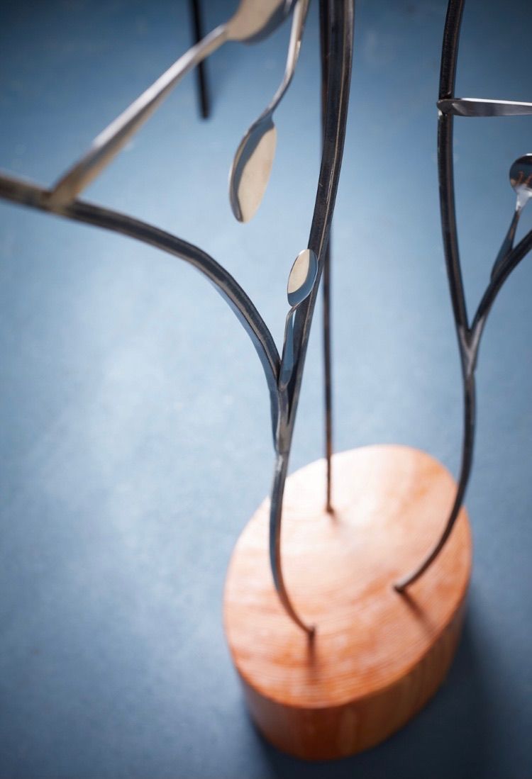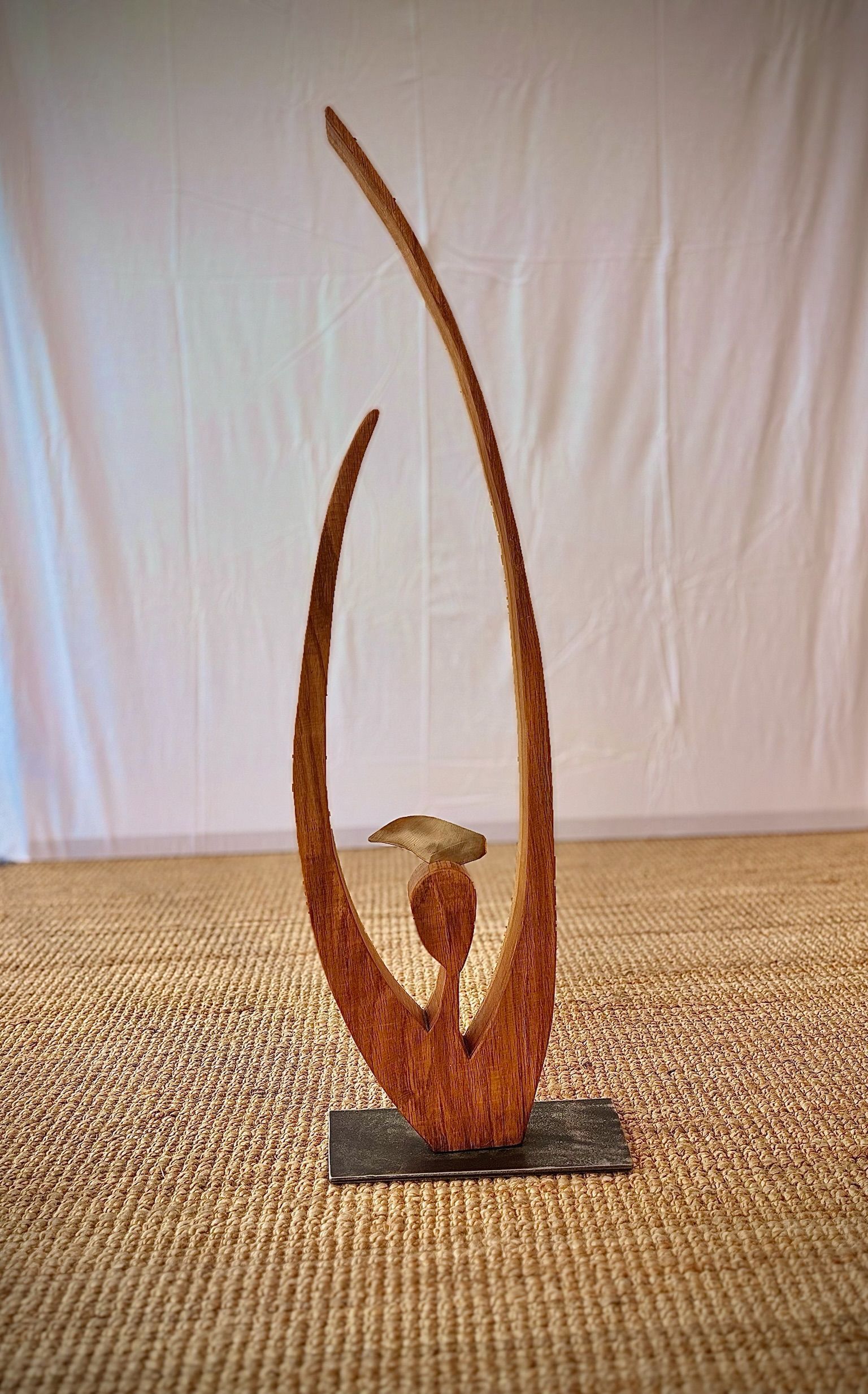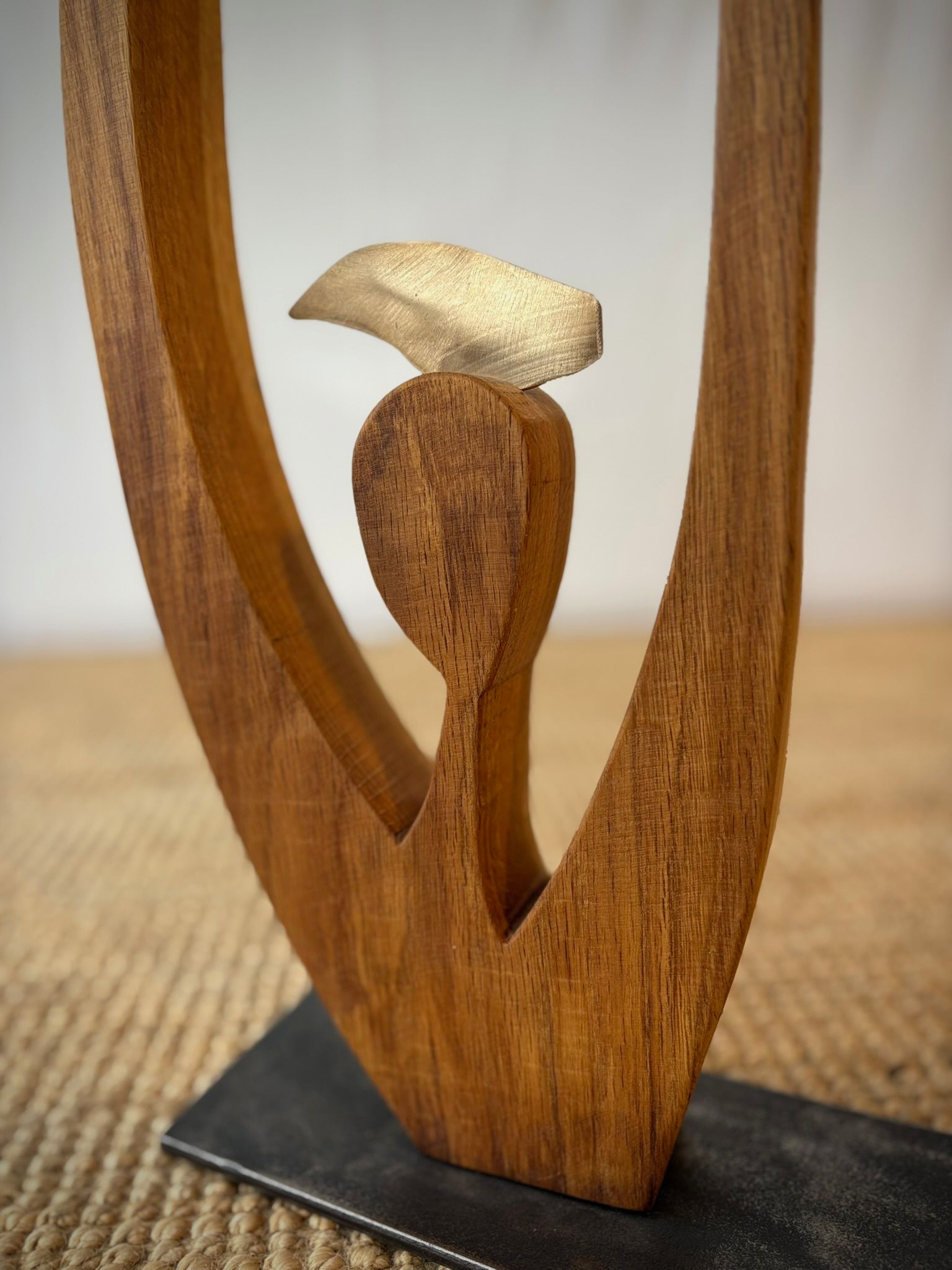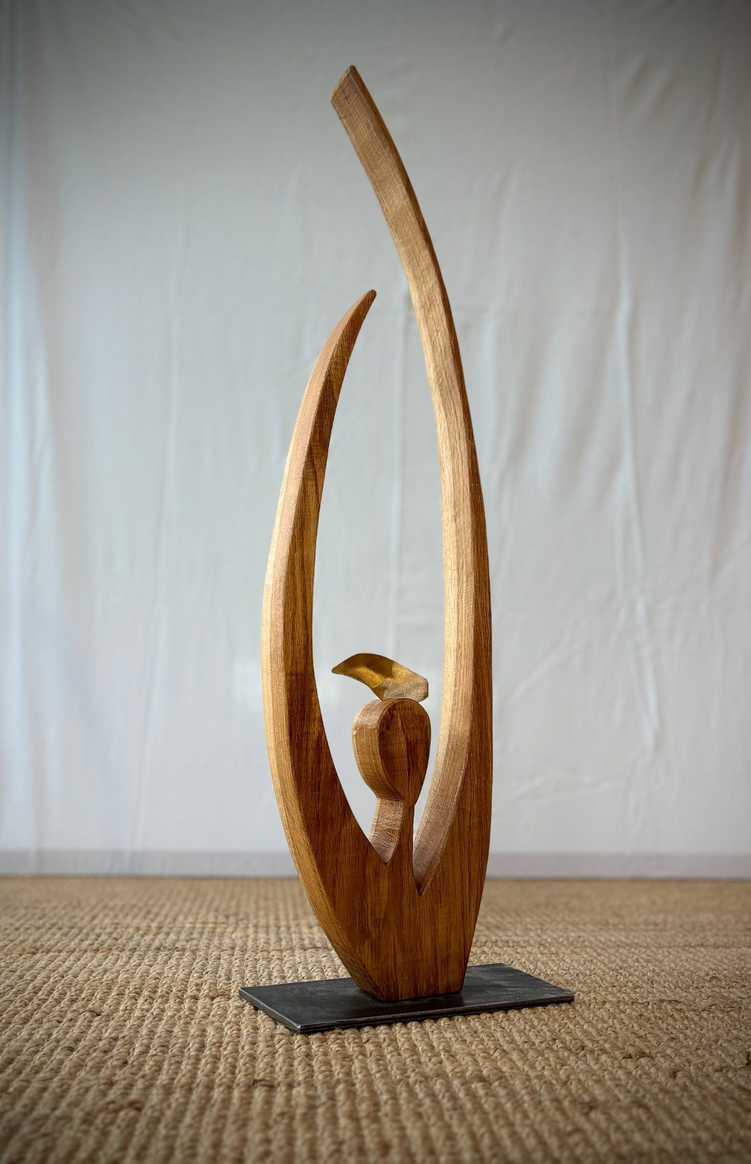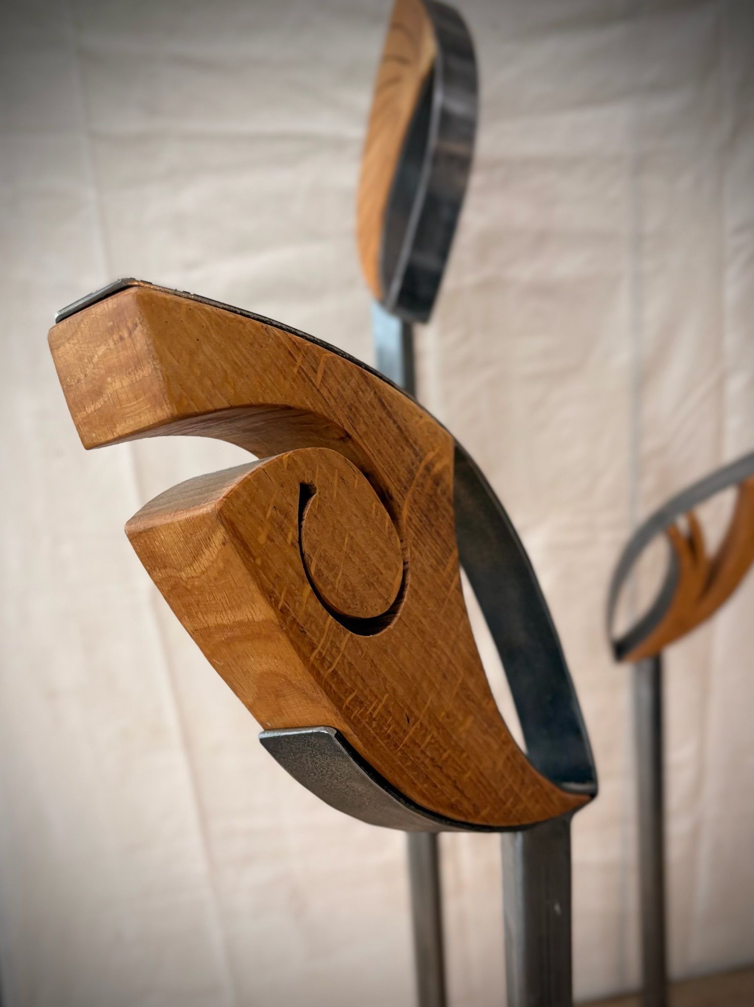 Het optische contrast tussen de harde rechte lijn en de afgeronde rug vertellen over recht en genade. Ze horen bij elkaar en strijden met elkaar. Dit beeld moet je met je handen bekijken.