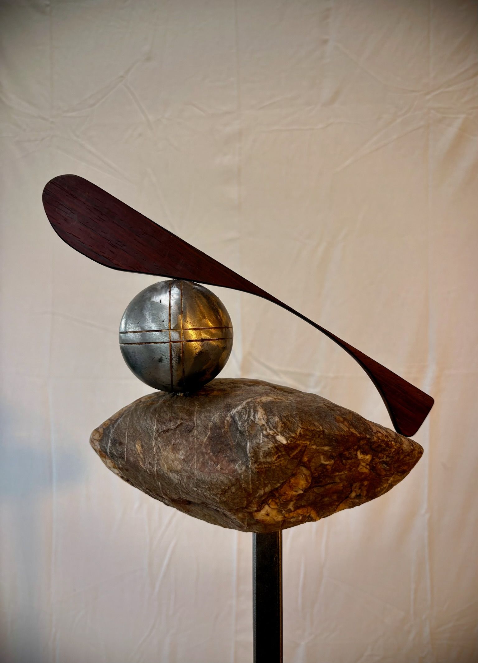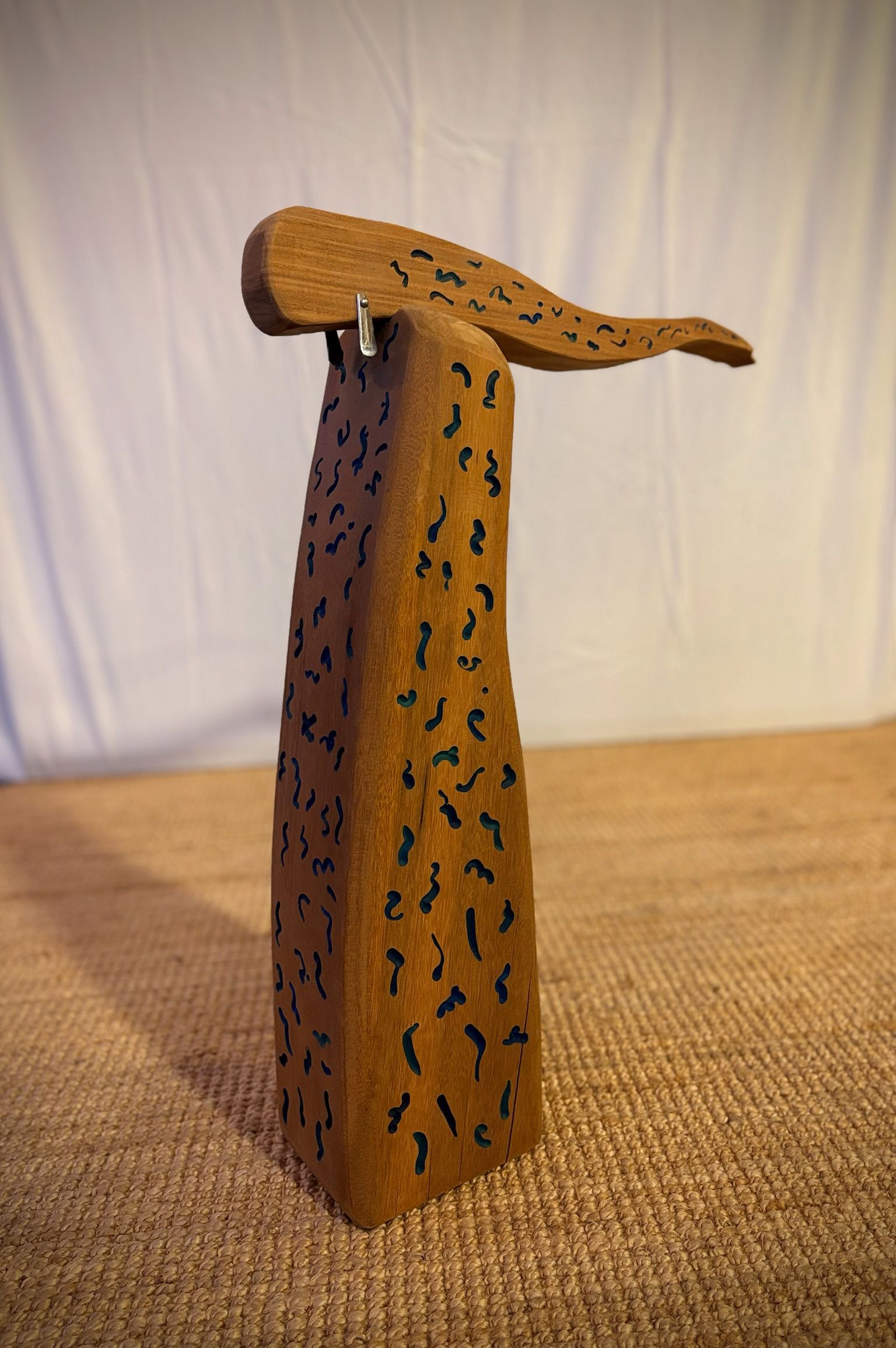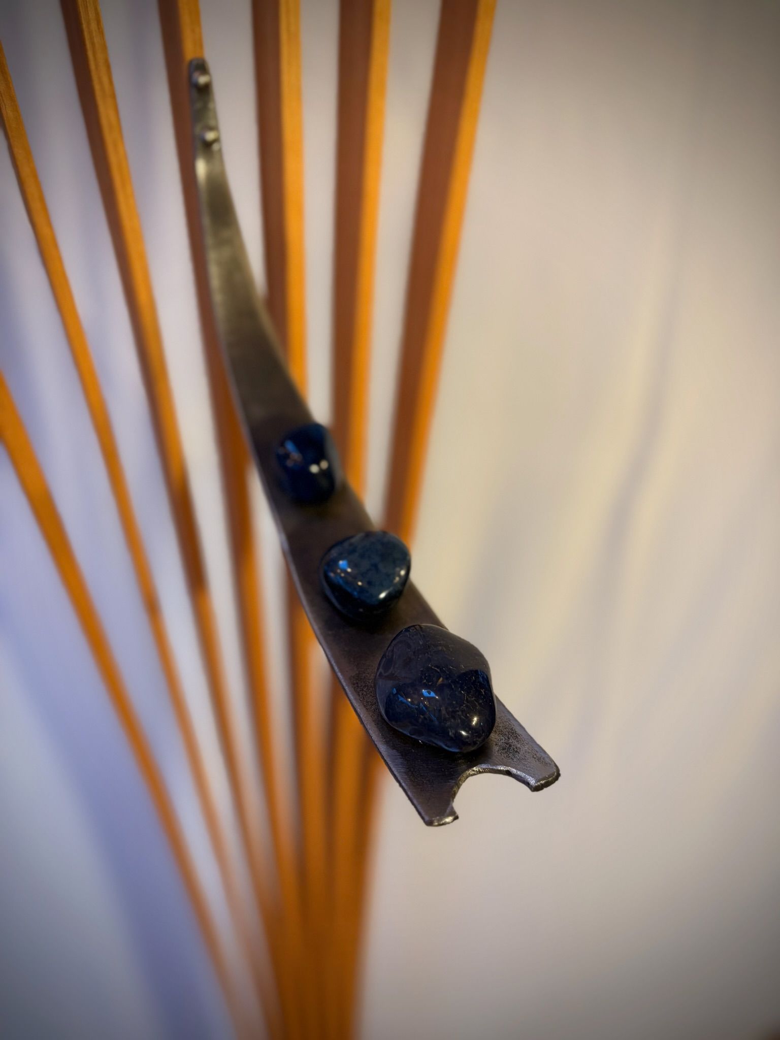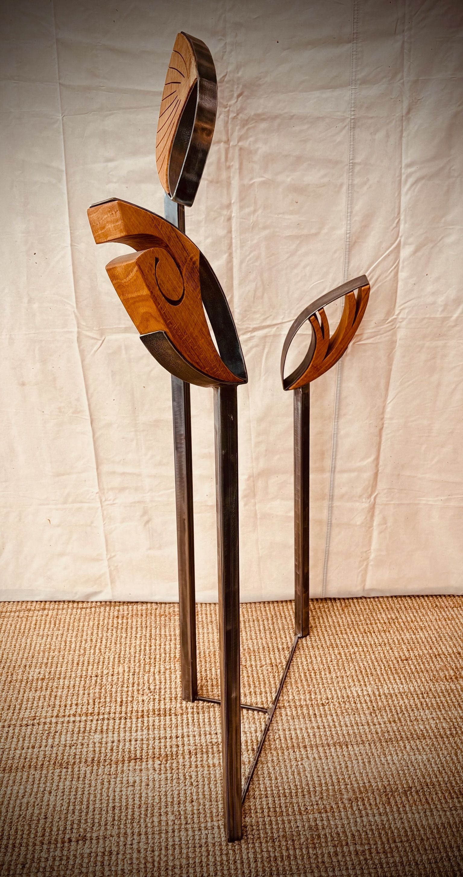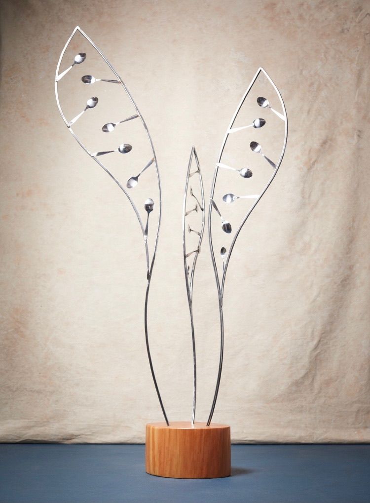 Het optische contrast tussen de harde rechte lijn en de afgeronde rug vertellen over recht en genade. Ze horen bij elkaar en strijden met elkaar. Dit beeld moet je met je handen bekijken.